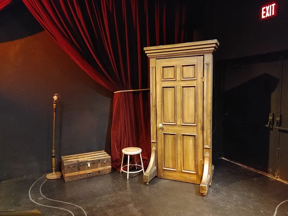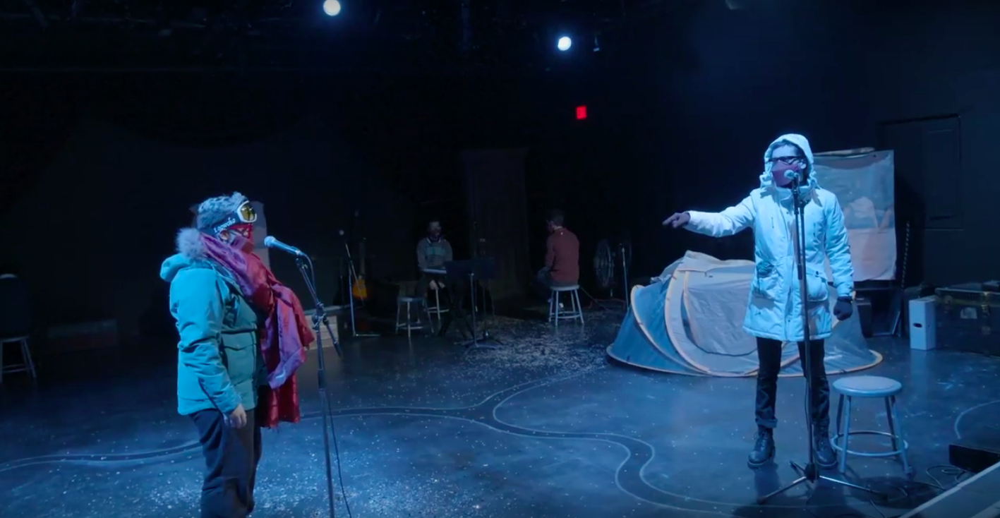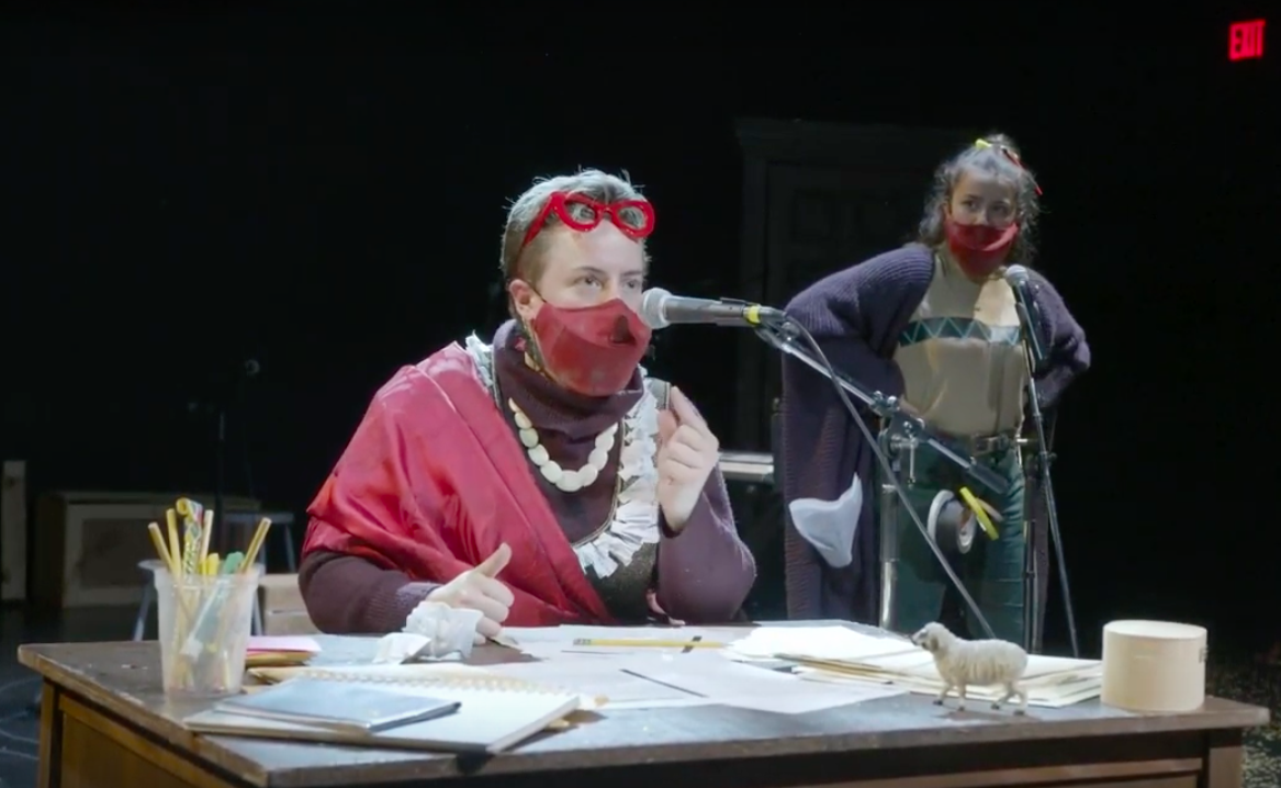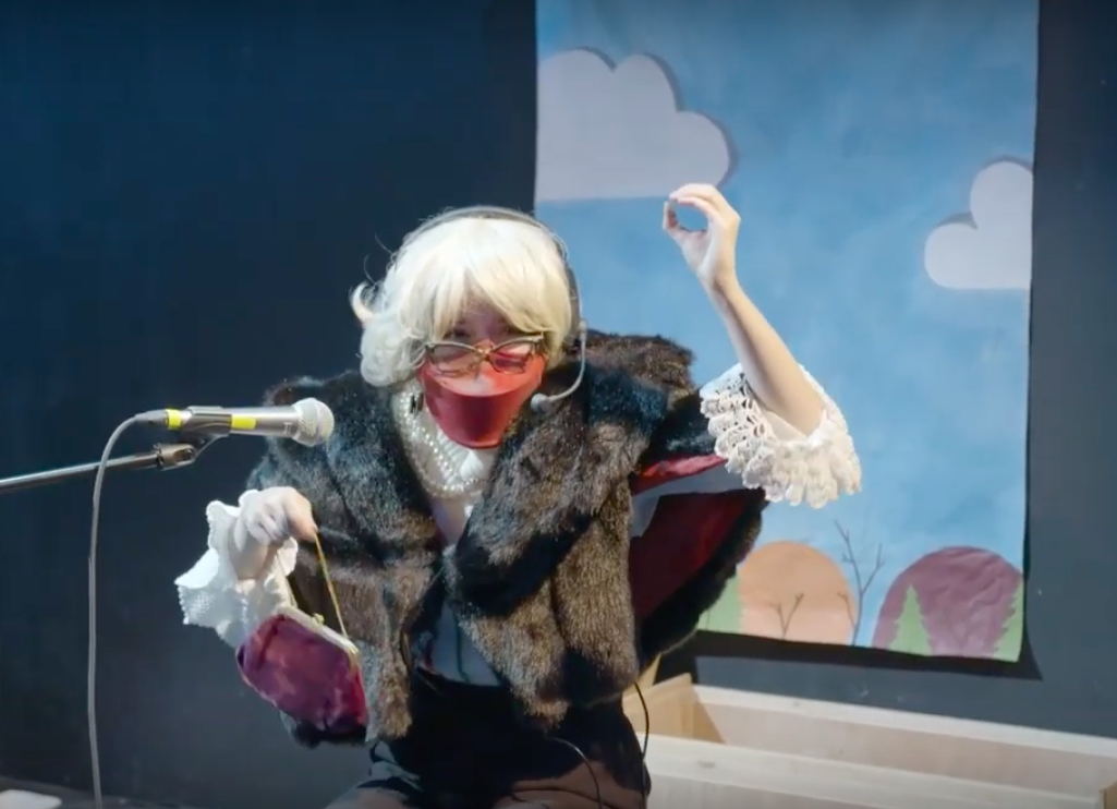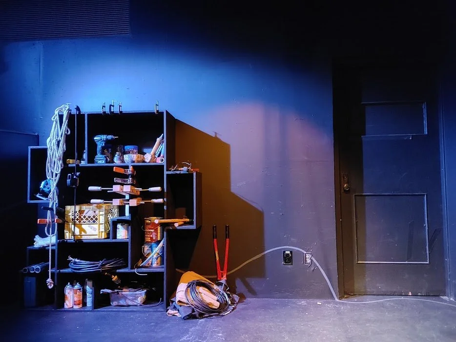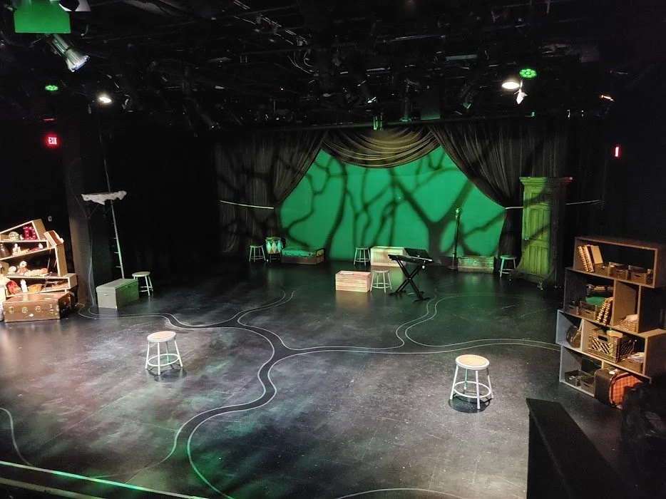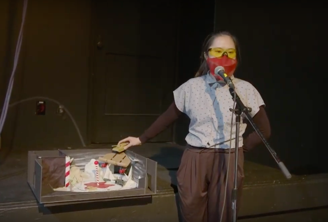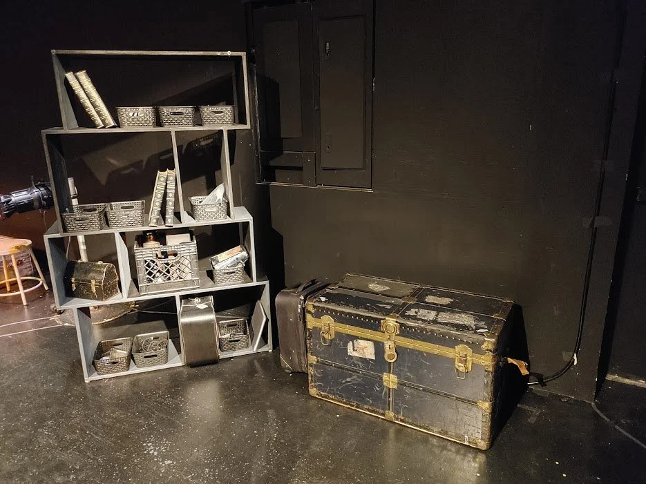 Originally written for the stage, our production of the quirky piece Theatre:The Play was filmed and streamed for audiences at home. The set was designed to keep all nine cast members in their own spaces, six feet away from each other. Each actor had their own individual storage box and/or shelf that reflected their unique characters, inside which they kept their props.